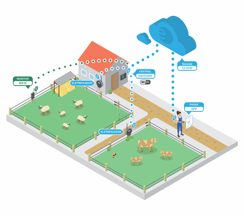 O Gateway pode ser conectado à internet e ao fencee Cloud, aplicativo pelo qual é possível controlar, configurar e monitorar remotamente todos os dispositivos conectados, diretamente pelo celular, tablet ou computador, de qualquer lugar do mundo, a qualquer momento.